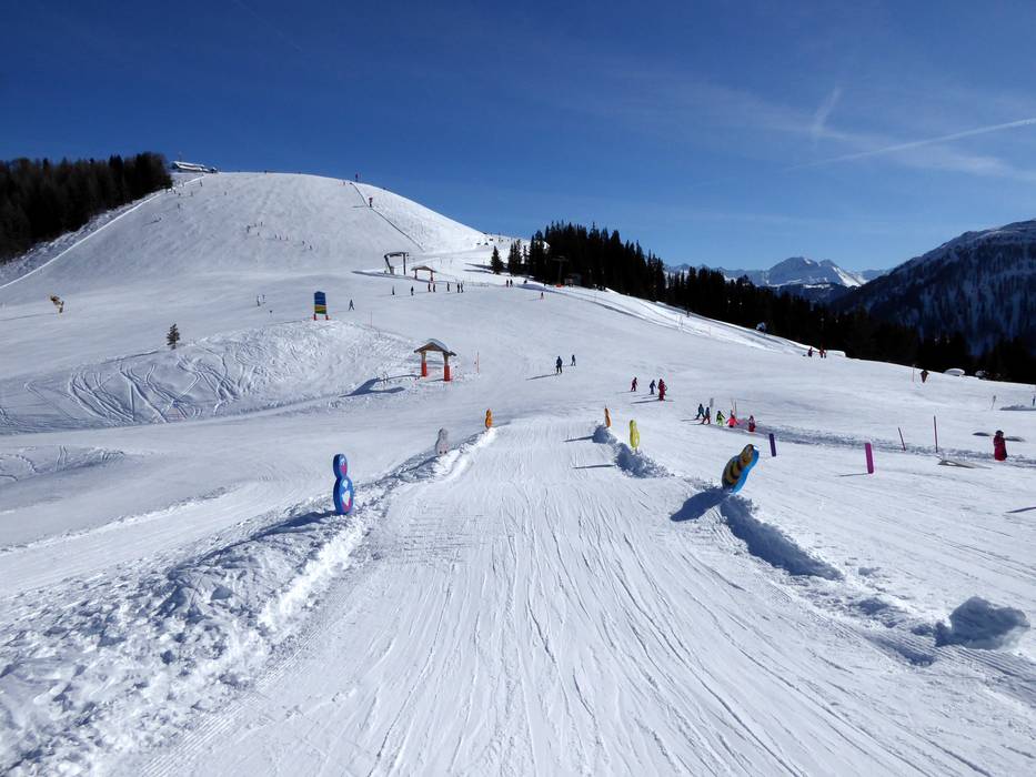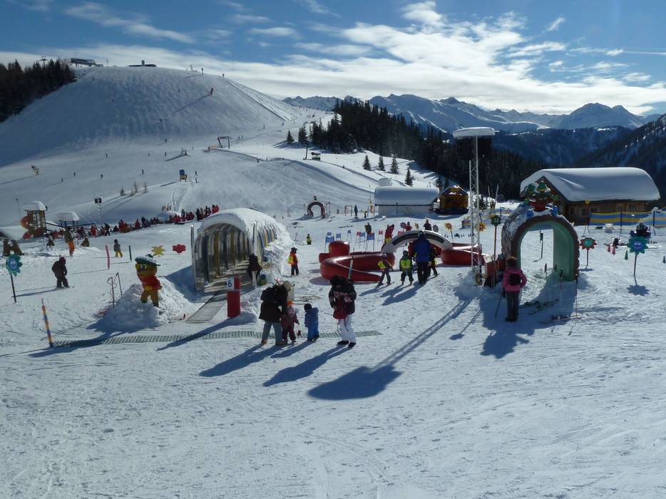 La Kinderschneealm se trouve directement au Komperdell. Un espace parfait pour les petits, et ceux qui sont déjà à l’aise sur les skis peuvent descendre la piste Bärenpiste ou monter vers les sommets avec la télécabine familiale sécurisée pour enfants Gampen.