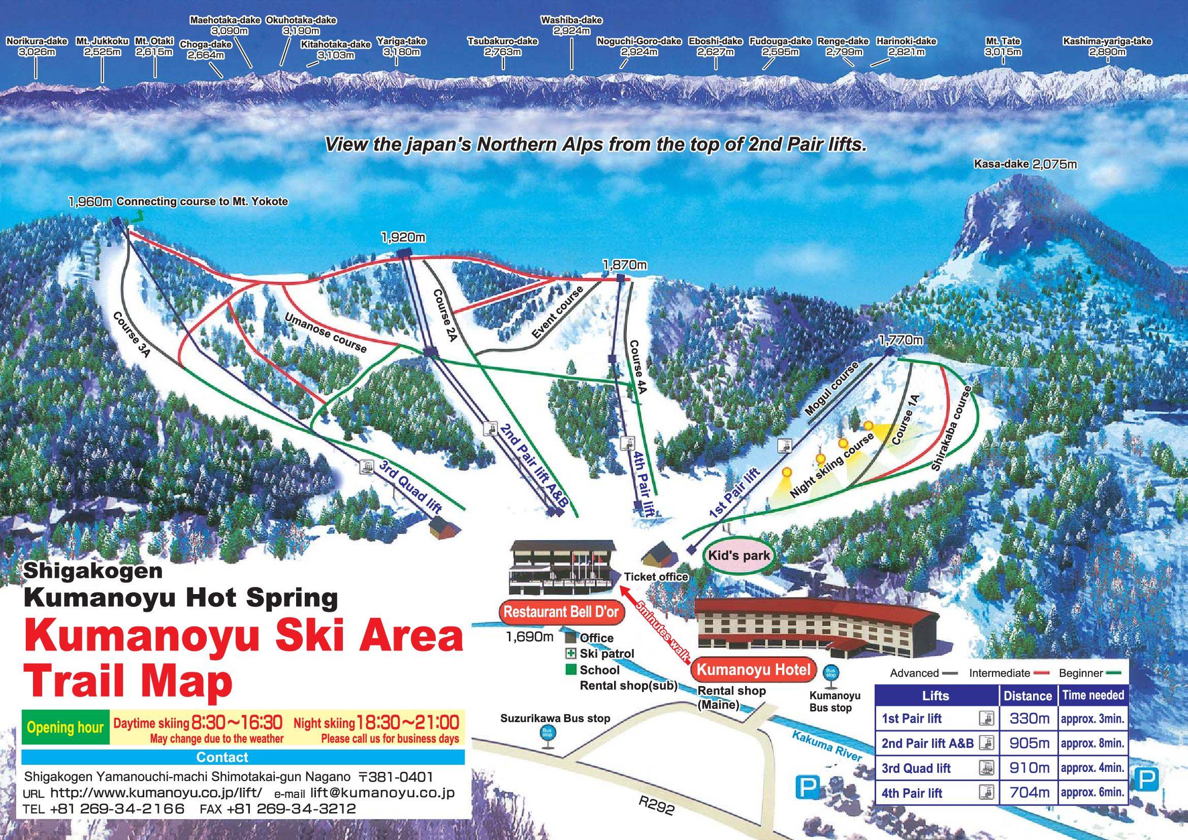 Plan des pistes Kumanoyu Saison 2024/2025