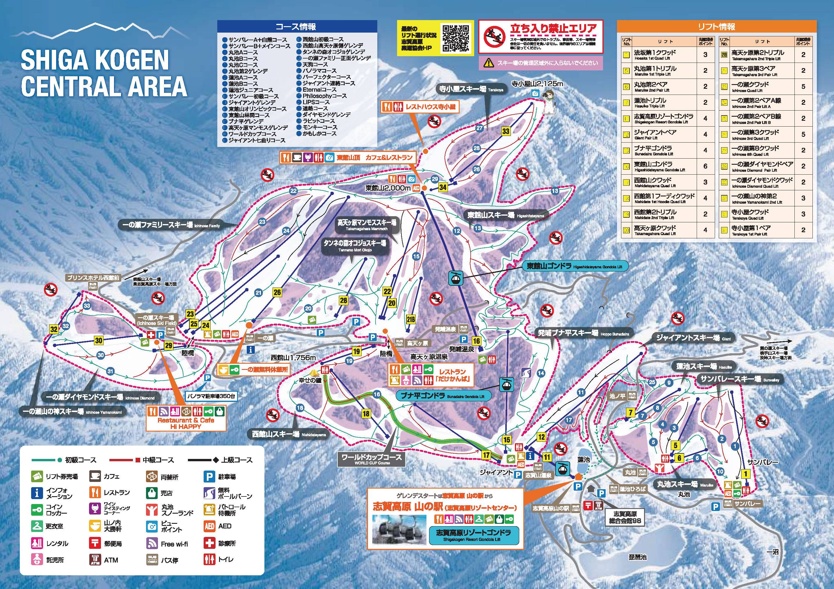 Plan des pistes Shiga Kogen Central Area Saison 2024/2025
