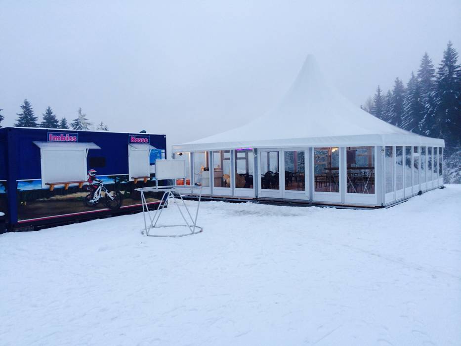 Nouveau pavillon panoramique chauffé (env. 100 places assises) pour manger, boire, se réchauffer...1998/1999