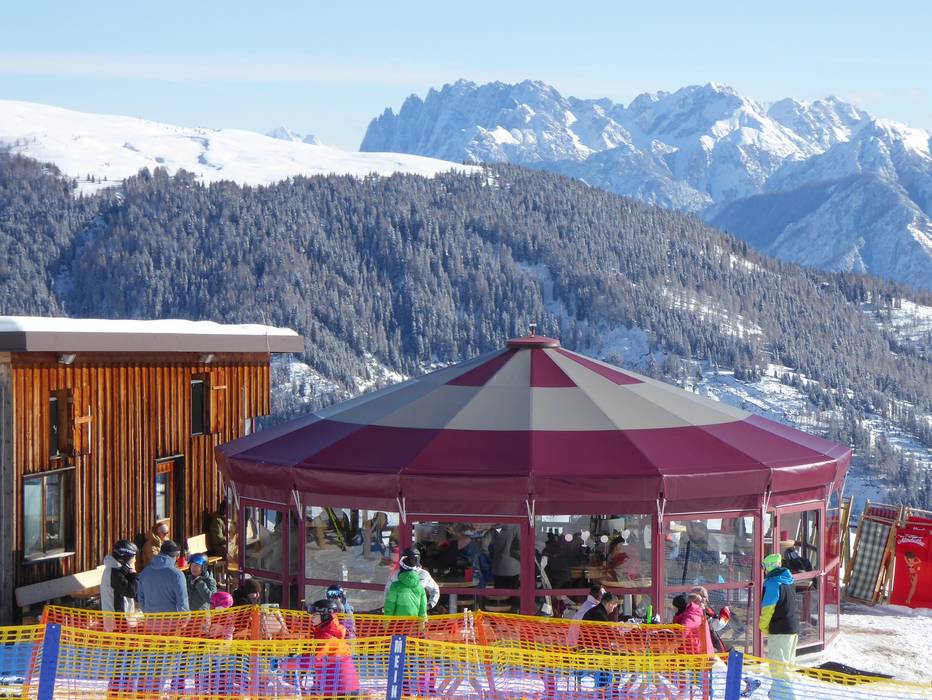 Dans les bars à parasol situés aux stations amont et aval de la télécabine, vous pouvez terminer agréablement votre journée de ski.