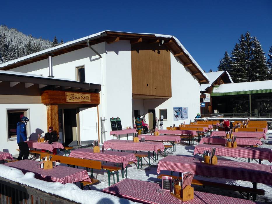 En plus du service en libre-service, le Kapellrestaurant propose également le restaurant avec service à table S'Pfennili au 1er étage. Ici, vous pourrez vous régaler de spécialités culinaires d'ici et d'ailleurs. Entouré d'un panorama montagneux captivant, le bar ensoleillé invite à terminer la journée de ski en toute convivialité lors de l'après-ski avec des rythmes endiablés, ou à simplement profiter du soleil sur la grande terrasse.