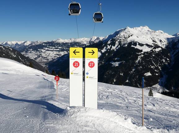 Indications de directions (plans, panneaux informatifs, signalisation) et sécurité sur le domaine skiable Silvretta Montafon