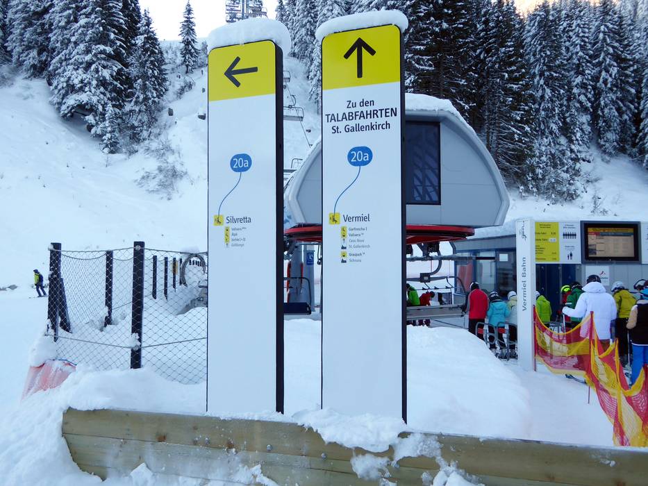 Pour la saison 2010/2011, un tout nouveau système de signalisation des pistes a été développé et mis en place pour la Silvretta Montafon. On y retrouve de nombreux éléments familiers, comme les numéros de piste en bleu, rouge et noir, mais aussi de nombreuses nouveautés. Un coup d'œil aux panneaux indique non seulement où mène chaque piste, mais aussi quelles installations se trouvent sur le parcours. Pour les remontées mécaniques situées le long de cette piste, il est également indiqué quelles autres installations et remontées sont accessibles. Cela permet de s’orienter plus facilement et rapidement, et de profiter encore plus simplement des multiples possibilités offertes par la Silvretta Montafon. De plus, des panneaux électroniques installés aux principaux emplacements et aux points d’accès fournissent des informations actualisées sur les pistes, les webcams et la sécurité.