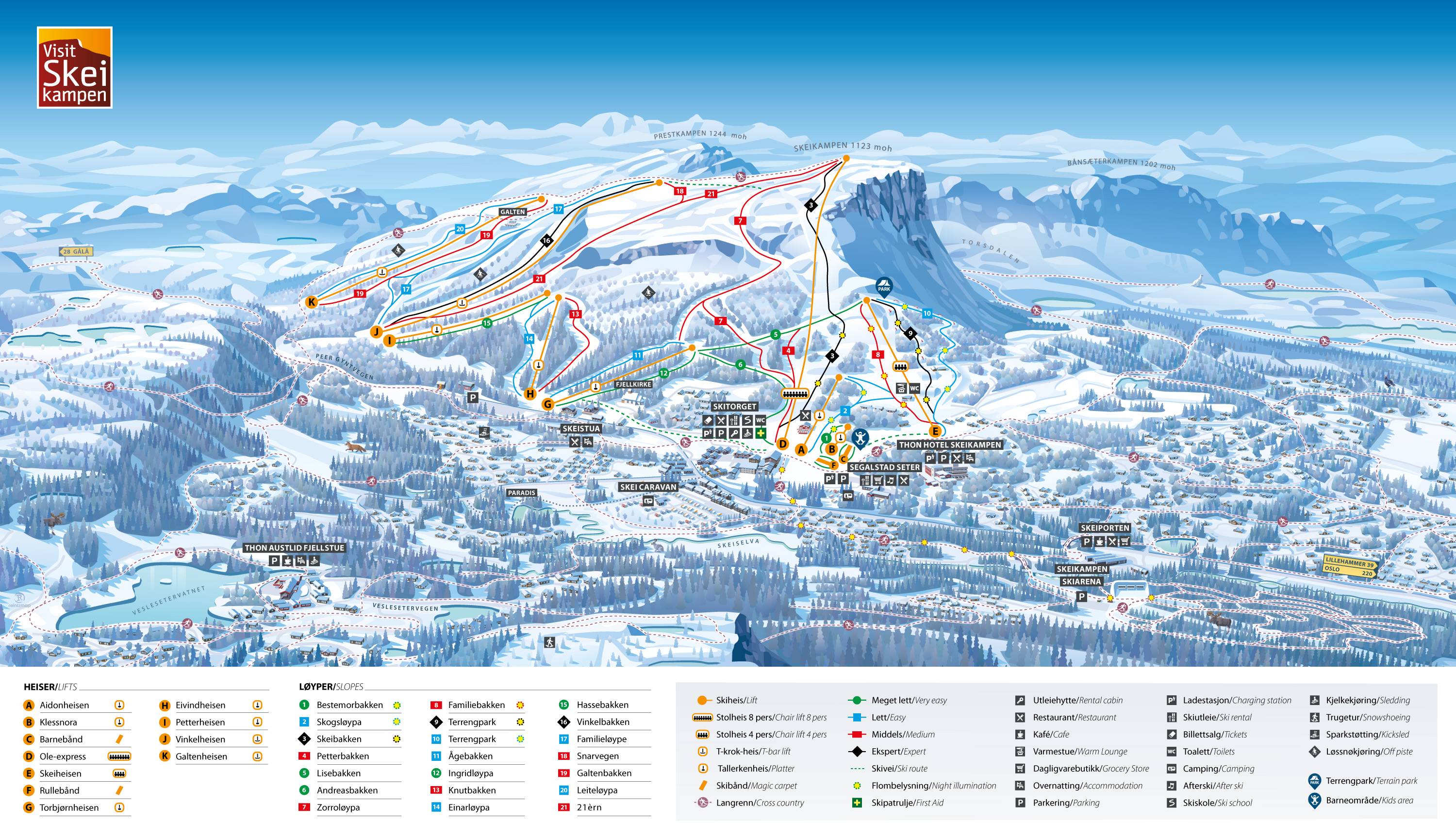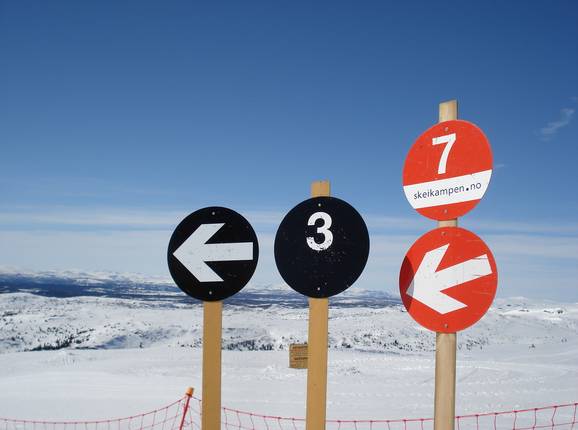 Indications de directions (plans, panneaux informatifs, signalisation) et sécurité sur le domaine skiable Skeikampen – Gausdal