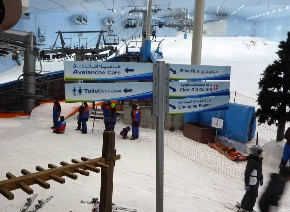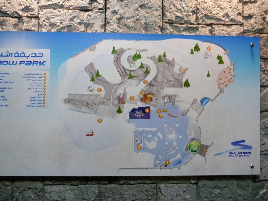 Indications de directions (plans, panneaux informatifs, signalisation) et sécurité sur le domaine skiable Ski Dubai – Mall of the Emirates