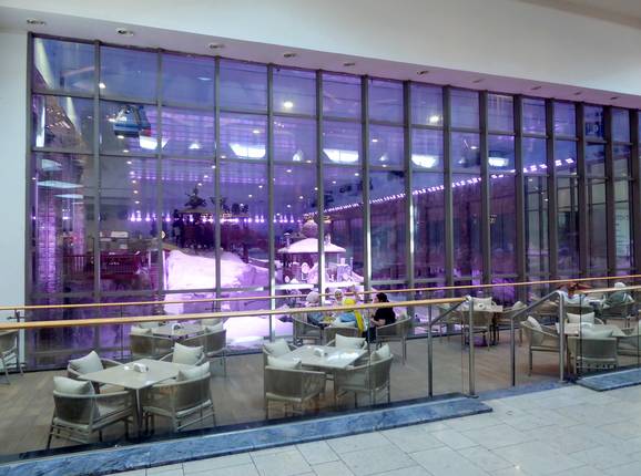 La station de ski intérieure Ski Egypt propose une ambiance après-ski chaleureuse avec vue sur les pistes. Ici, vous pouvez prendre un verre après avoir skié ou fait du snowboard.
