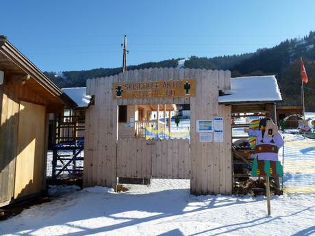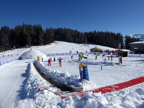 Les familles et les enfants se sentent très bien au Ski Juwel. Une KidsRun et une Funslope offrent beaucoup de variété et de plaisir à toute la famille. Des jardins d’enfants, des services de garde et plusieurs remontées pour débutants sont répartis dans le domaine skiable. Les enfants peuvent idéalement commencer dans le jardin d’enfants, progresser ensuite sur les remontées pour débutants et finalement utiliser les autres remontées. Le Schatzberg Zwergenland est particulièrement recommandé. À la station intermédiaire de la Schatzbergbahn, le Zwergenland est idéal pour les premières expériences de ski, pour s’améliorer et pour jouer dans la neige.