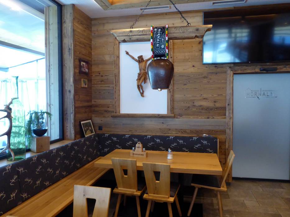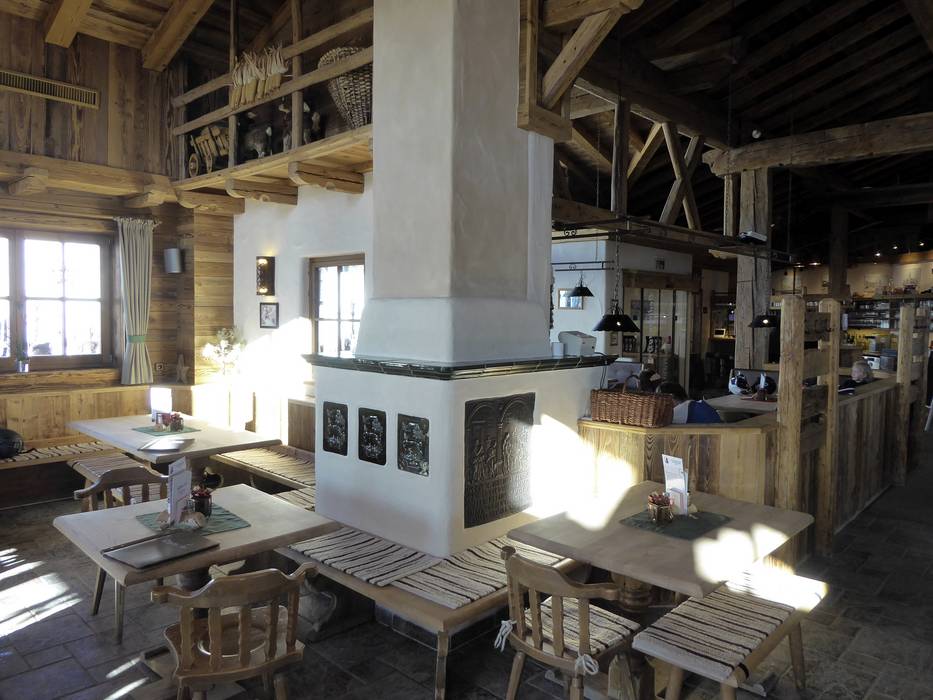 La cabane rustique est aménagée avec beaucoup de bois dans le style tyrolien. Lors des journées froides, un poêle en faïence réchauffe l’atmosphère. Des plats typiques du Tyrol sont proposés et, par beau temps, la terrasse ensoleillée avec ses chaises recouvertes de fourrure invite à la détente.