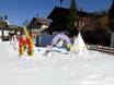 Dans le terrain d'entraînement "Bobo's Kinder-Club" à Hochbrixen, les enfants à partir de 3 ans apprennent à skier de manière ludique avec des moniteurs de ski spécialement formés. L'école de ski Brixen im Thale gère le Kinderland.