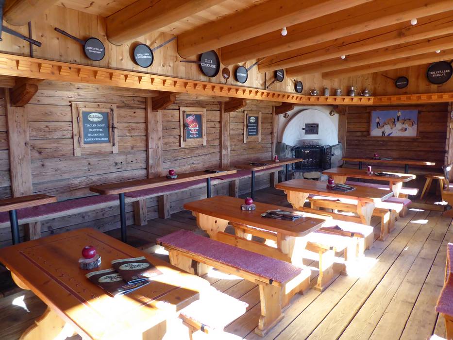 Le refuge Stoagrub'n, avec service, propose une salle chaleureuse avec cheminée ouverte et une grande terrasse ensoleillée offrant un panorama magnifique. Des spécialités tyroliennes y sont servies.