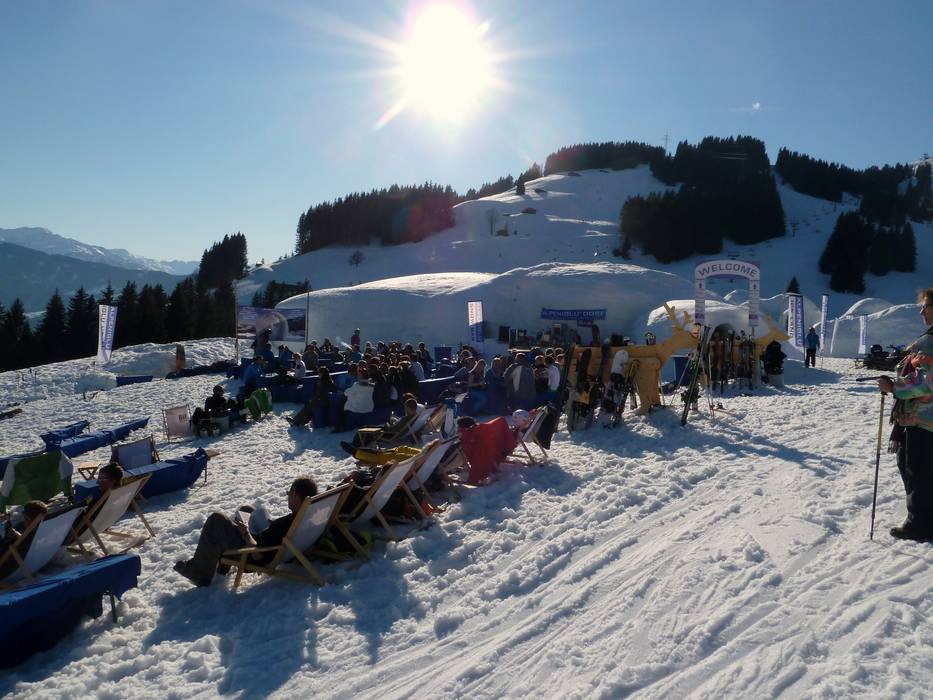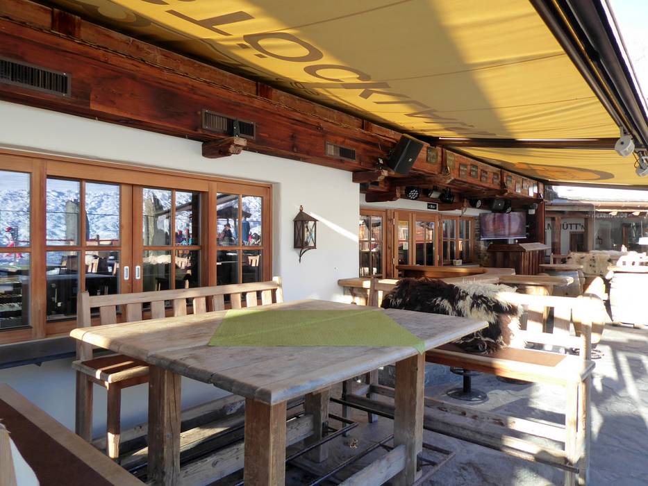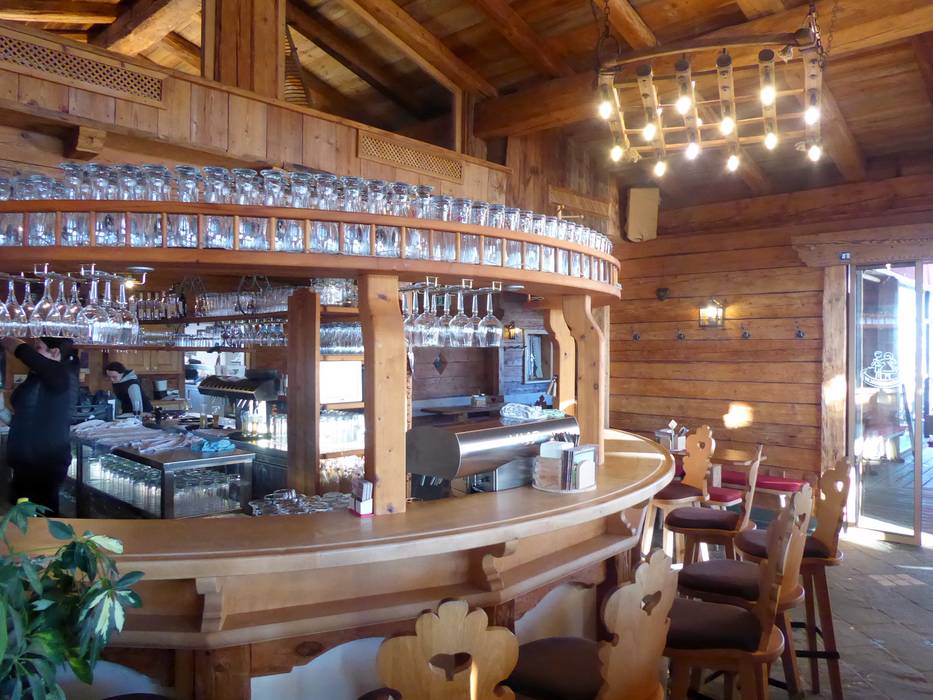 Chalet rustique avec bar et terrasse ensoleillée. L'après-midi, on passe à l'après-ski.