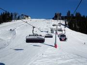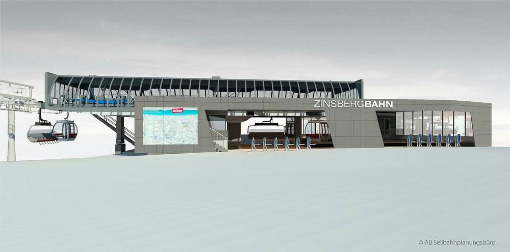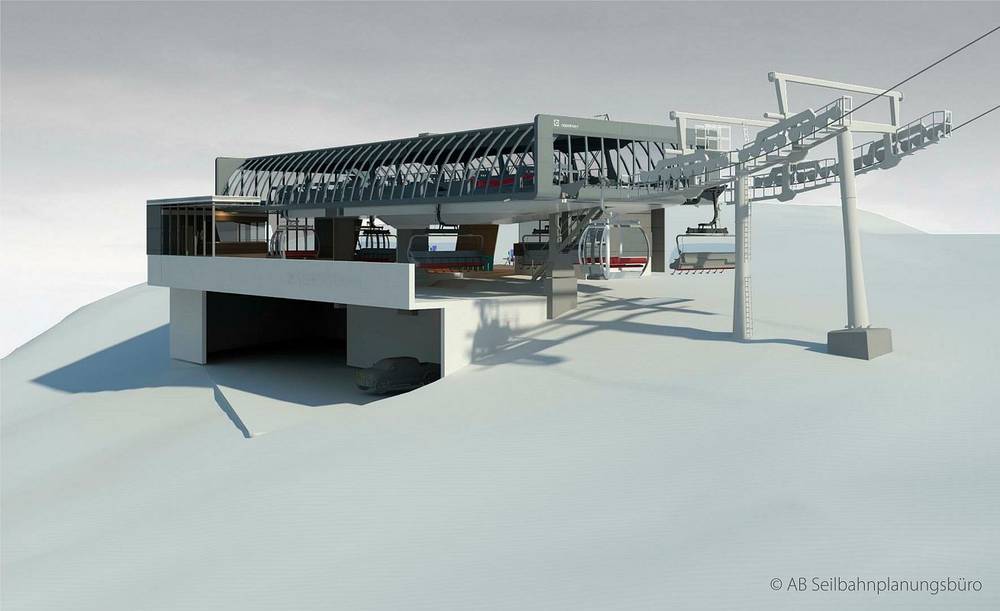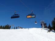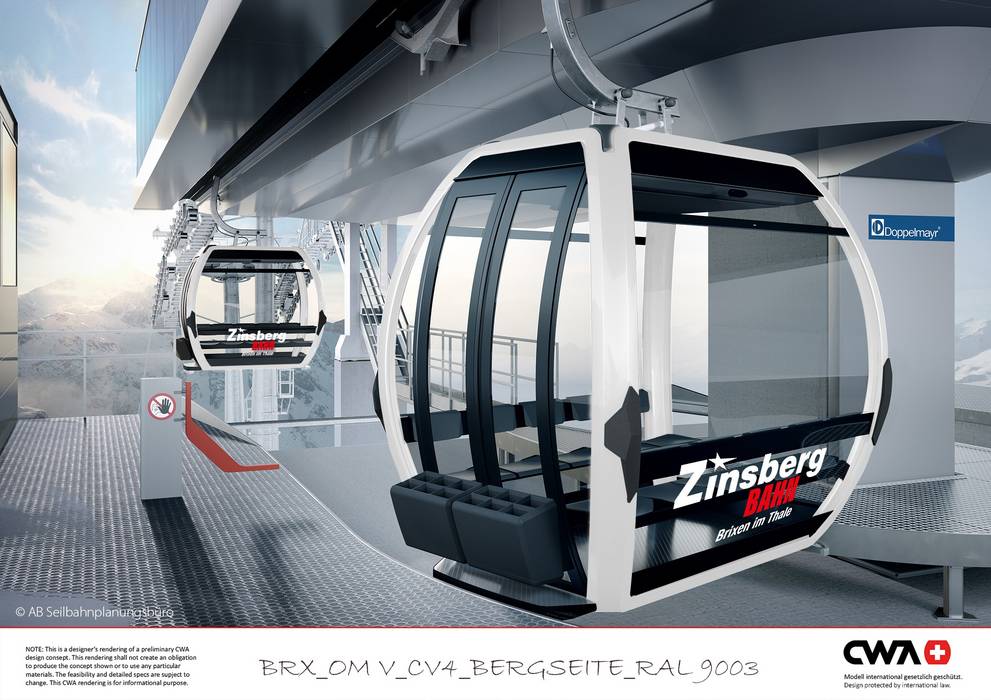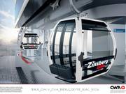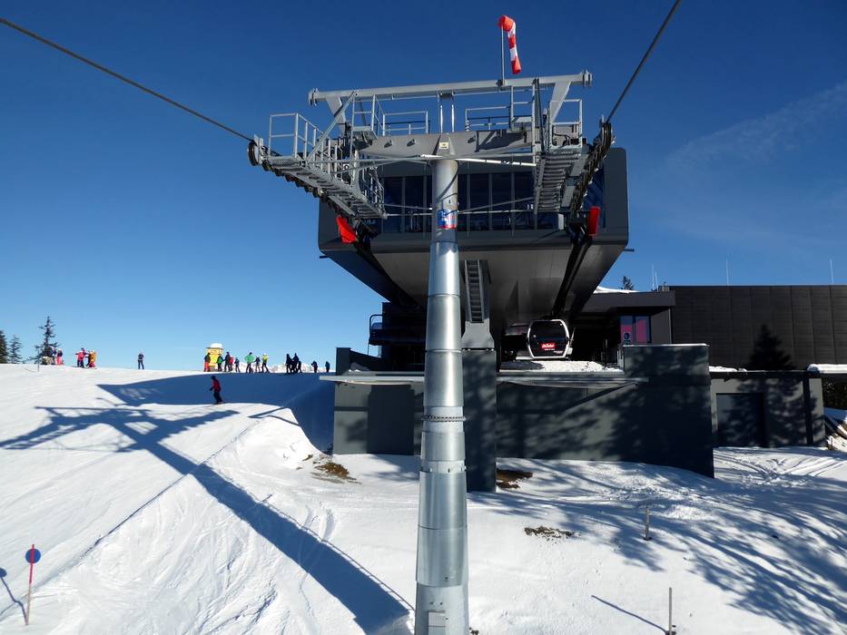 Téléphérique monocâble composé de sièges à 8 places et de cabines à 10 places avec sièges chauffants