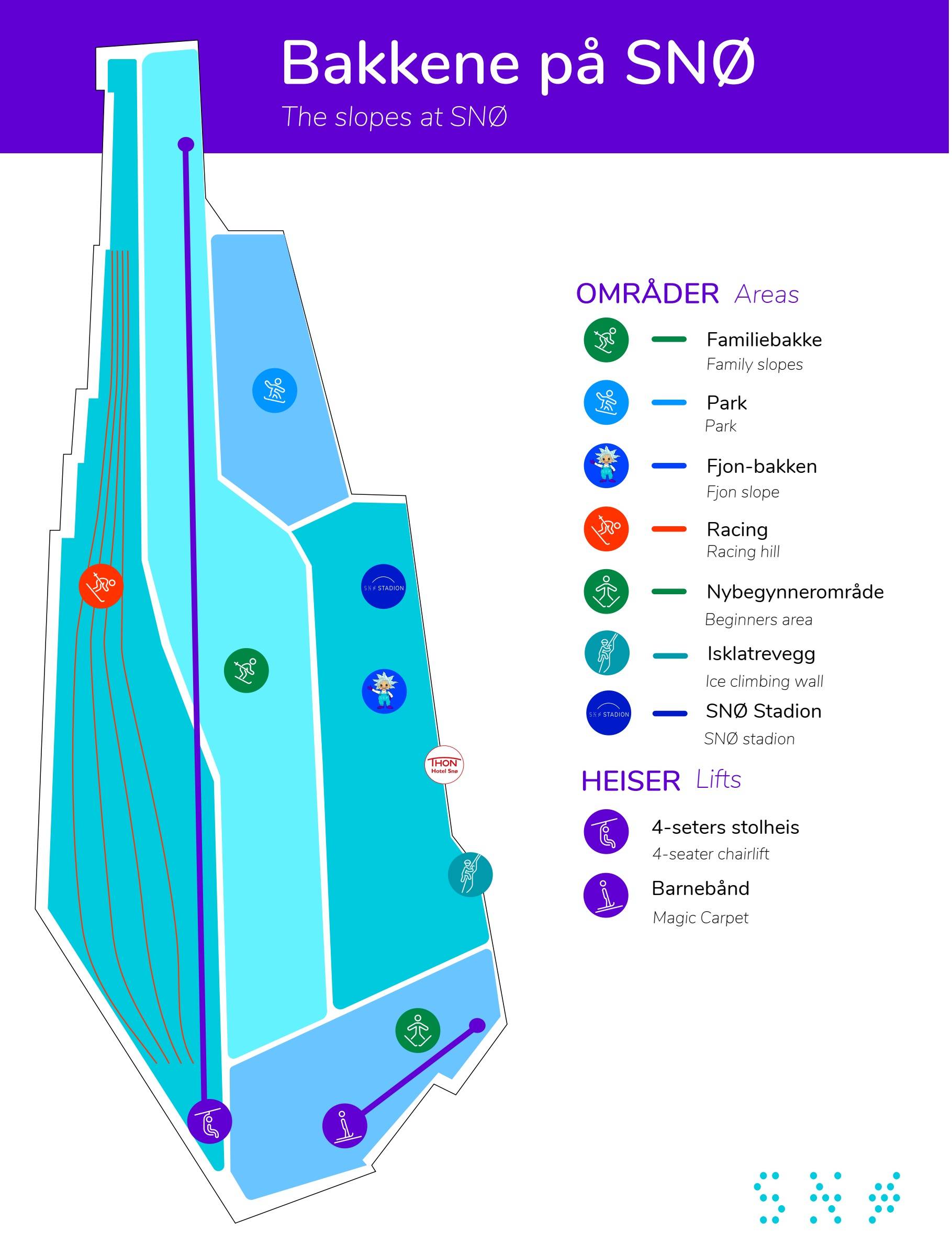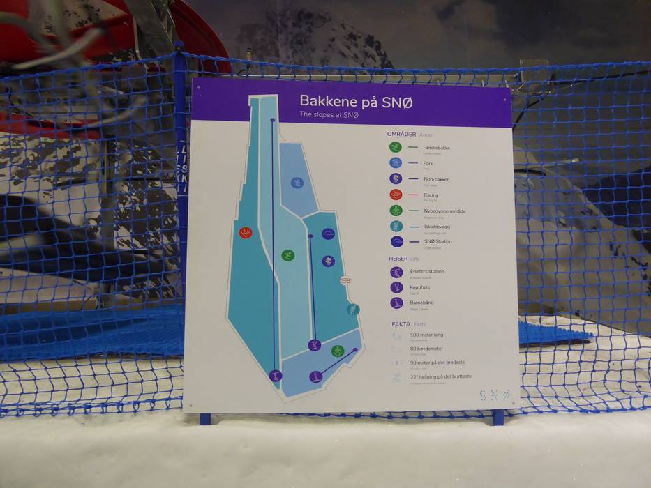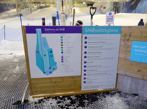 Il existe un plan des pistes schématique avec toutes les informations concernant le hall de ski SNØ.