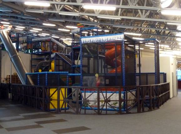 Le DruFunPark se trouve directement à l'entrée du hall de ski. Ici, les enfants s'amusent avec différents toboggans, un trampoline et une tour d'escalade.