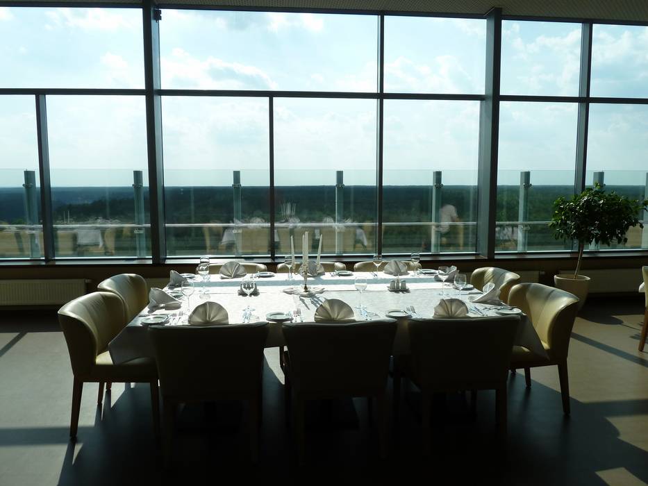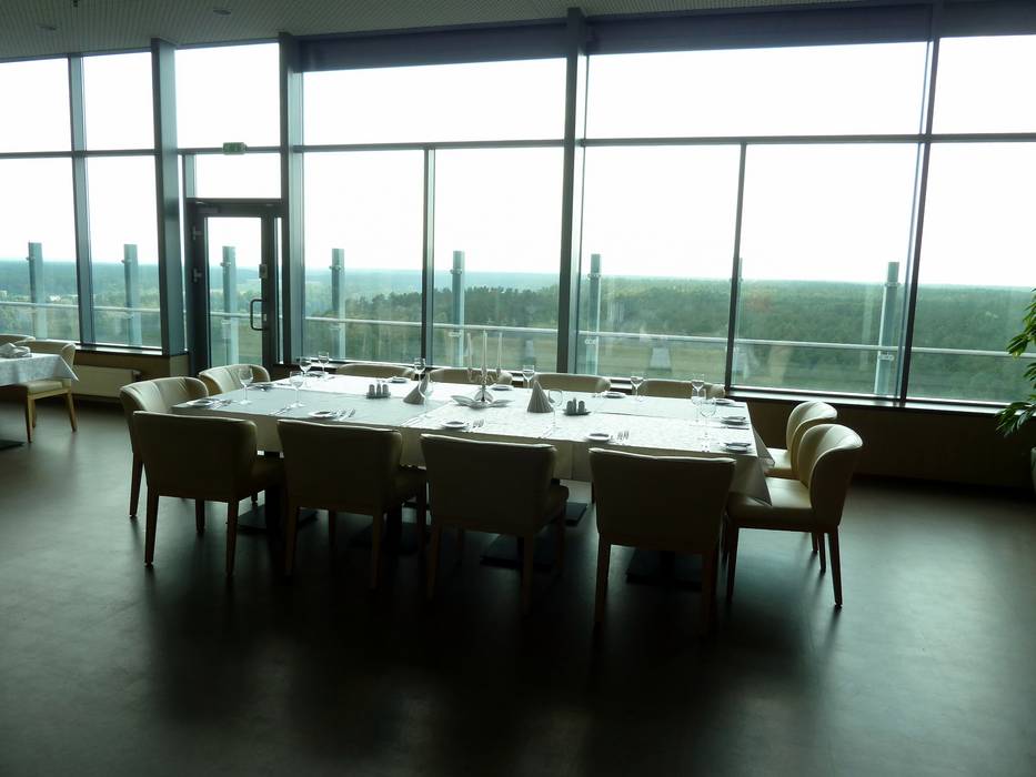 Le restaurant "Aero Gallery" propose une carte de haute qualité et offre une vue imprenable sur le hall de ski et sur le vaste paysage. Un bar complète l'offre. L'accès se fait par ascenseur depuis le parking et l'entrée coûte 15 litas lituaniens (environ 4,30 EUR).
