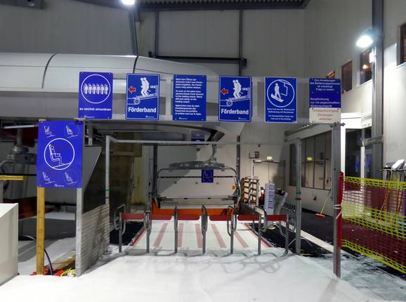 Des panneaux d'information à l'entrée du hall de ski ainsi que quelques panneaux de signalisation sur les pistes aident à s'orienter.