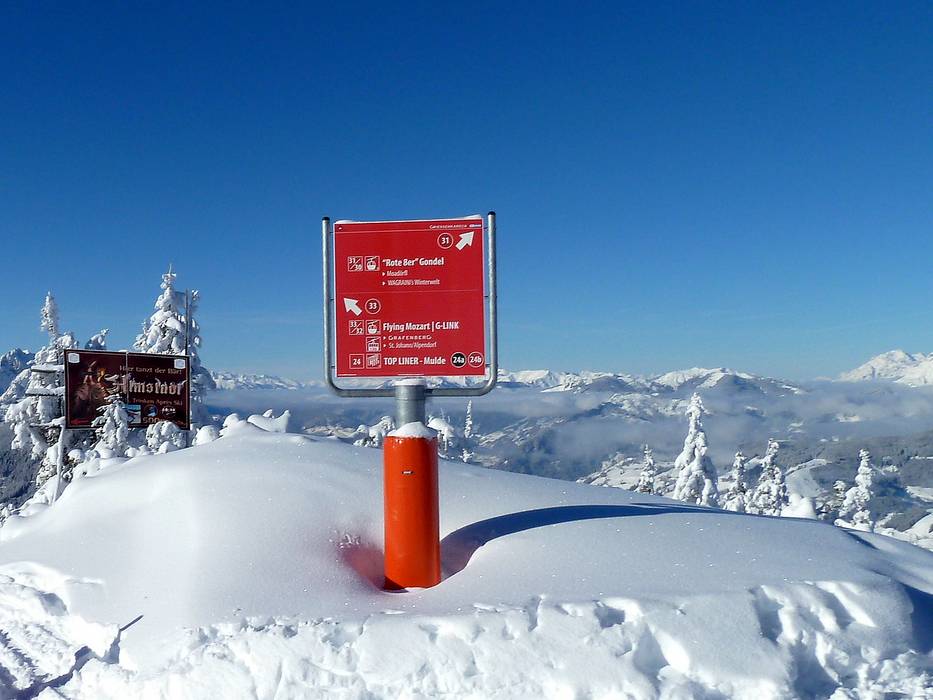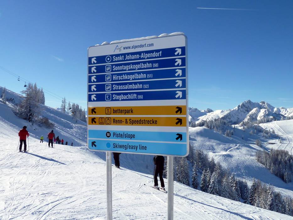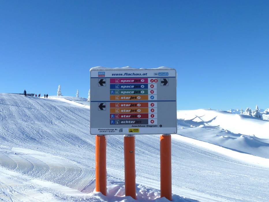 Indications de directions (plans, panneaux informatifs, signalisation) et sécurité sur le domaine skiable Snow Space Salzburg – Flachau/Wagrain/St. Johann-Alpendorf
