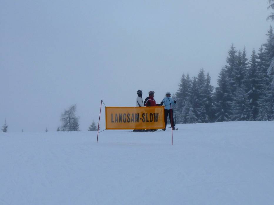 Dans le domaine skiable, la signalisation n’est certes pas totalement uniforme, mais toutes les directions et destinations sont clairement indiquées, même entre les différents secteurs. Dans la vallée et à certaines stations d’altitude, des panneaux électroniques fournissent également des informations en temps réel. Aux remontées mécaniques, les horaires d’ouverture sont affichés de manière bien visible, accompagnés d’une horloge et, le plus souvent, d’un thermomètre. Les zones dangereuses, telles que les intersections et la fin de la piste, sont signalées par des panneaux, et dans les endroits peu visibles, de grands avertissements incitent à adapter sa vitesse.