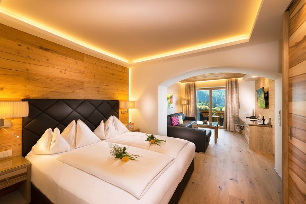 Des matériaux naturels et de haute qualité ainsi que des vues exceptionnelles sur le paysage montagneux créent un lieu de retraite unique. Nos nouvelles suites baignées de lumière séduisent par leurs grandes fenêtres panoramiques et, pour certaines, par un sauna et une baignoire privés dans la chambre ou sur le balcon.