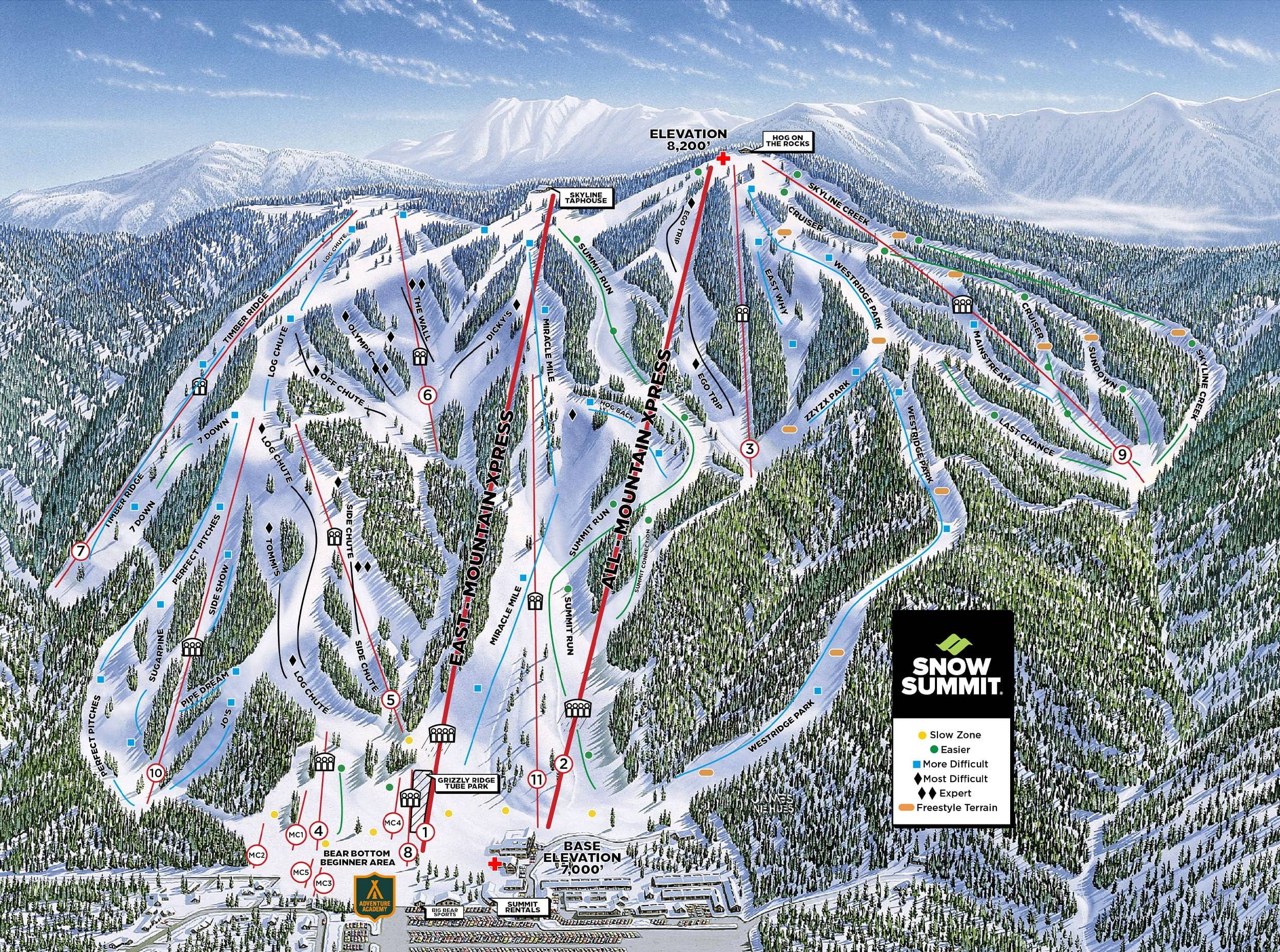 Big Bear Lake (3 km), Angelus Oaks (54 km) Communes près du domaine skiable