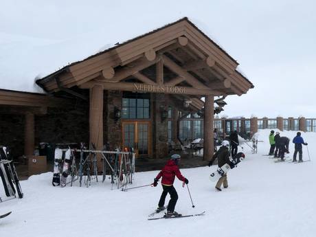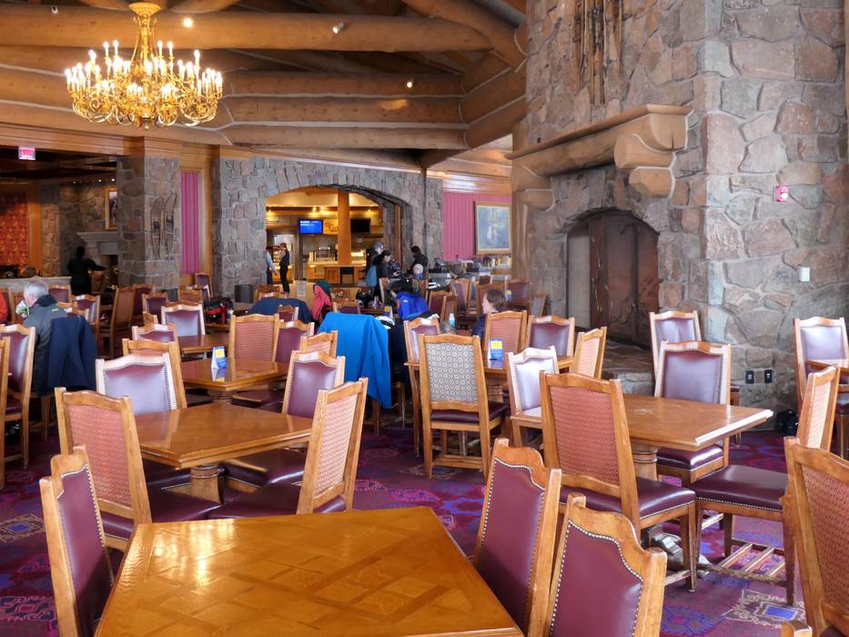 Le domaine skiable de Snowbasin se distingue par ses installations de restauration de première classe. Les restaurants et lodges sont de magnifiques bâtiments de style chalet en rondins. Ils disposent de hauts plafonds et de poutres en bois, de cheminées en pierre impressionnantes, d'immenses baies vitrées panoramiques et de gigantesques lustres.