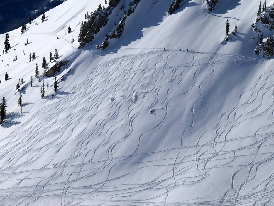 Le domaine skiable varié de Snowbird est situé dans le Little Cottonwood Canyon, au-dessus de Salt Lake City, dans l’Utah. Une télécabine et plusieurs télésièges desservent les pentes du Hidden Peak (3 353 m), et il y a également des tapis roulants. Parmi les points forts du domaine