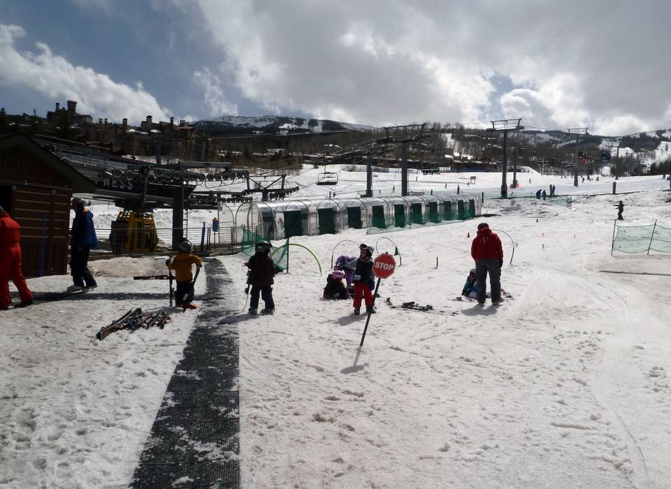Directement à la station de départ du Snowmass Village, il y a une zone d'apprentissage pour les enfants. Un tapis roulant couvert permet d'accéder facilement à la piste facile. De nombreux moniteurs de ski sont présents pour aider lors des premiers virages.
