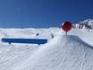 Snowpark/fun parc Funslope Aucun half-pipe Kick (tremplin de saut/rampe) Rails/slides Box Wallride Waveride Medium line Beginner/easy line Zone de chill-out avec musique Informations pour snowboarders