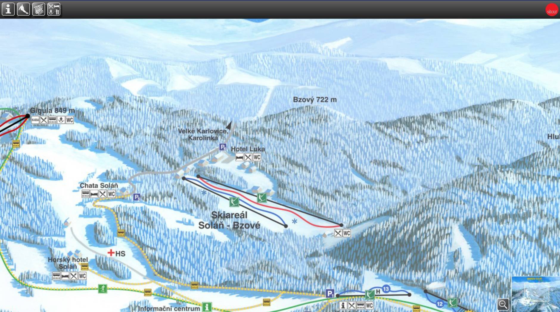 Plan des pistes Soláň – Bzové Saison ---- !!! closed temporarily/vorübergehend außer Betrieb