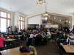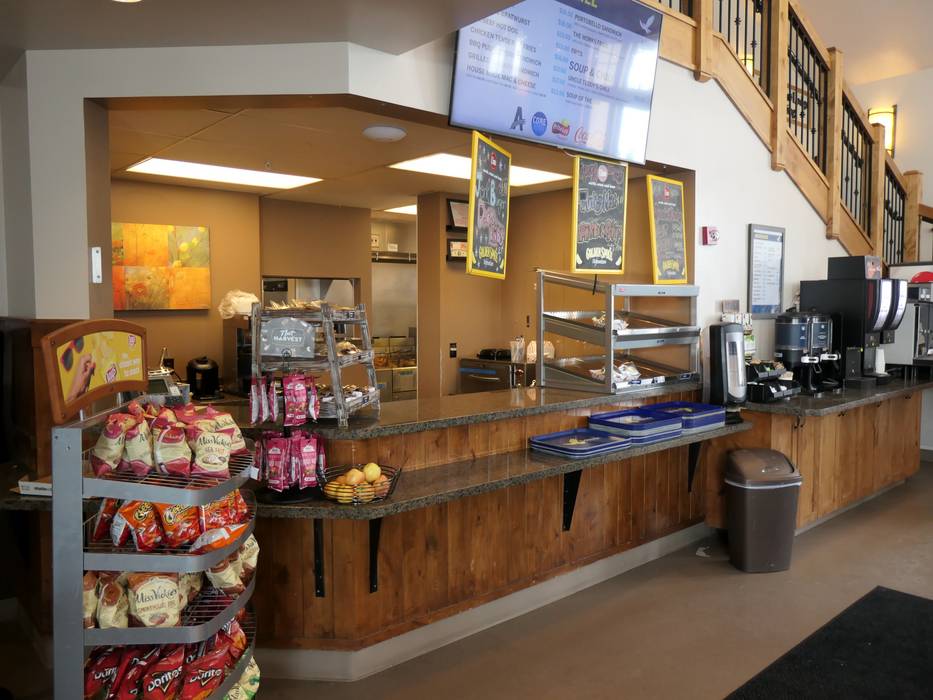 Le restaurant en libre-service propose le petit-déjeuner, le déjeuner et des snacks pour l'après-midi. Des pâtisseries, des salades, des sandwiches et des burgers sont proposés.