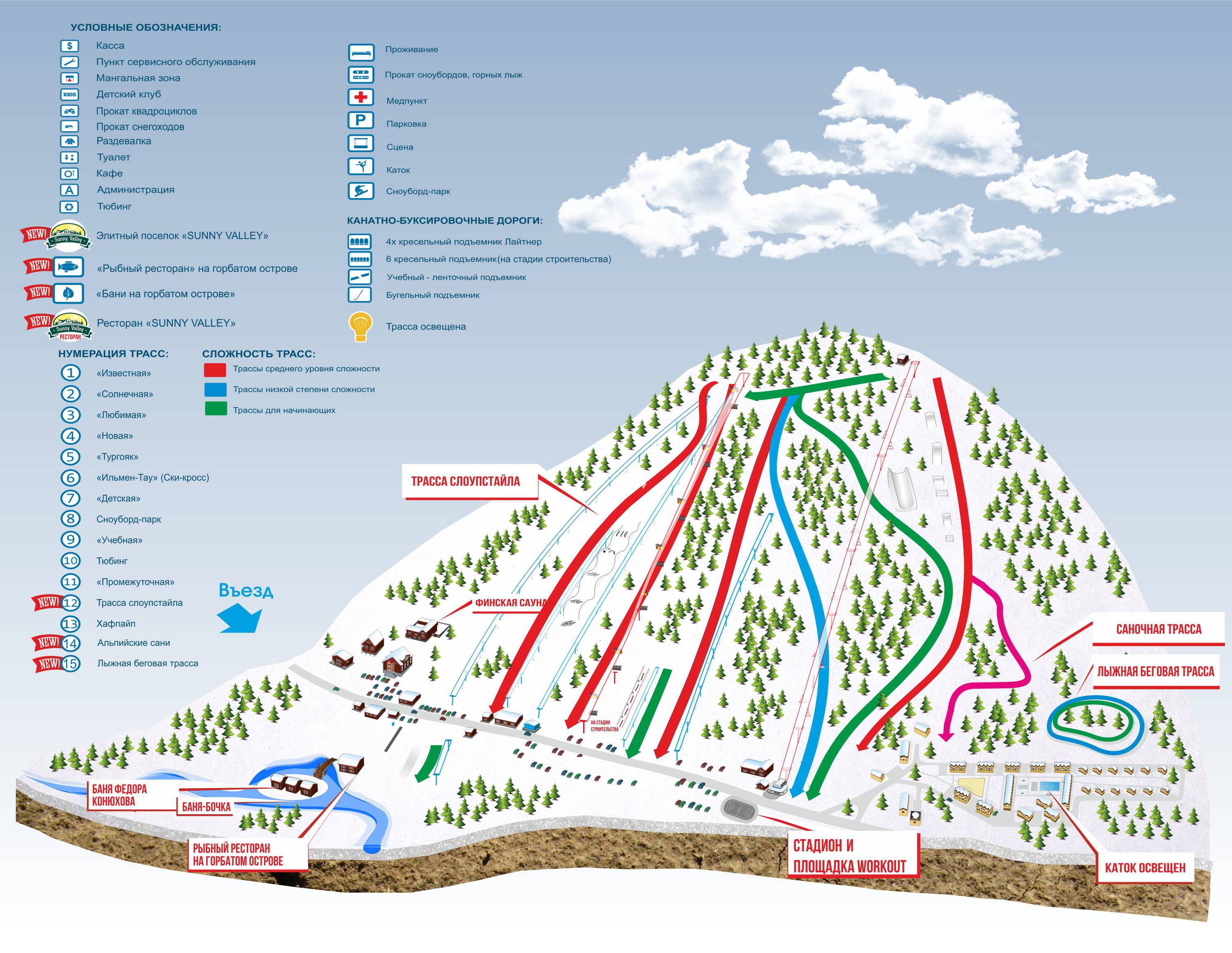Plan des pistes Solnechnaya Dolina Saison 2024/2025