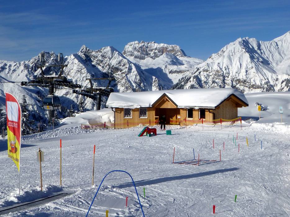 Directement à la station supérieure de la télécabine, le grand espace d'apprentissage Schneemannland ravit petits et grands. Deux tapis magiques et un téléski d'entraînement garantissent des progrès rapides. L'école de ski Klostertal propose dans le Schneemannland des cours pour les enfants de 3 à 5 ans qui n'ont plus besoin de couches. Une salle de séjour et de jeux offre les meilleures conditions pour des vacances réussies avec des enfants. Un service de garde pendant le déjeuner est également possible. Pour les enfants plus âgés, l'école de ski propose d'autres cours.
