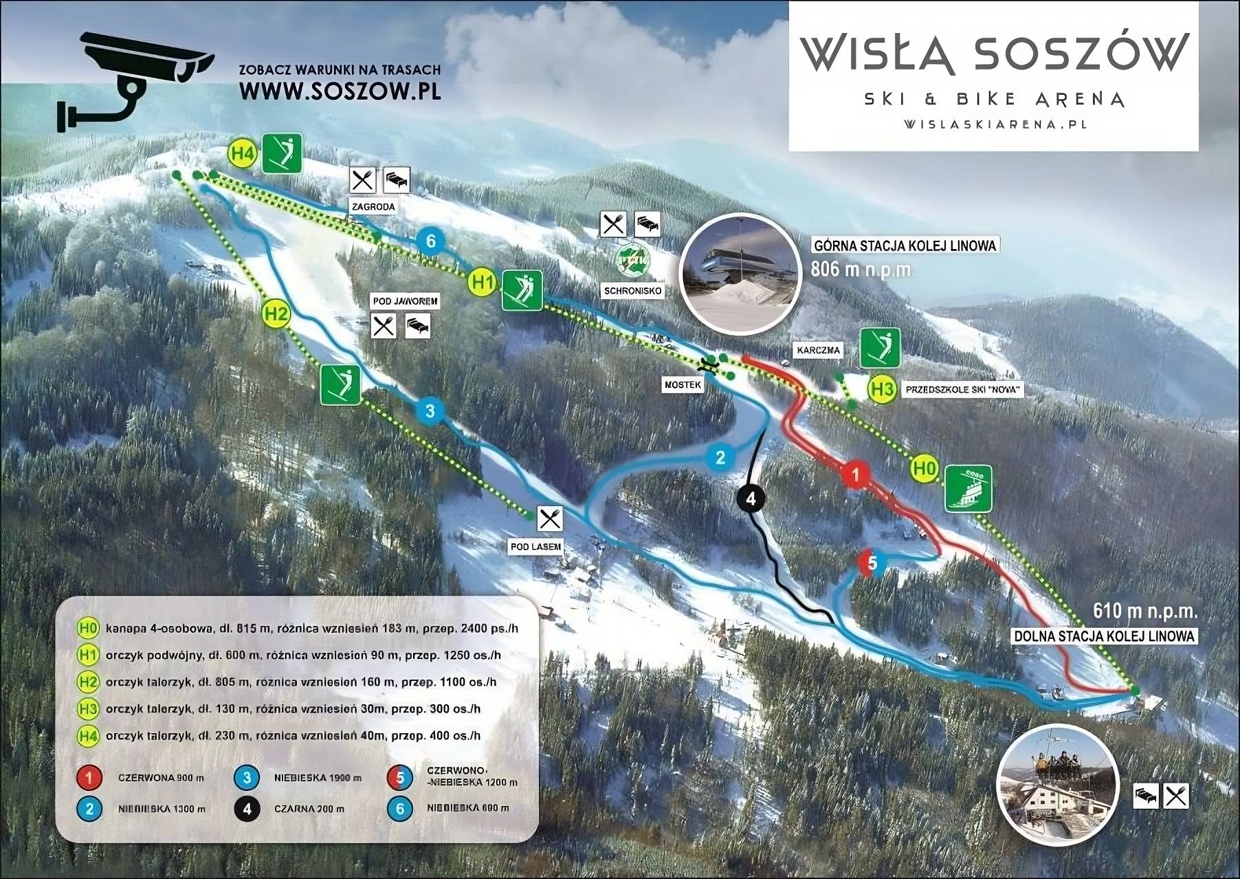 Plan des pistes Soszów – Jawornik (Wisła) Saison 2024/2025