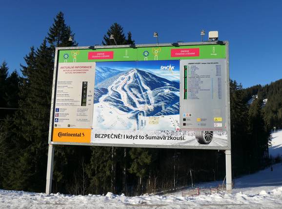 Indications de directions (plans, panneaux informatifs, signalisation) et sécurité sur le domaine skiable Špičák