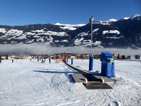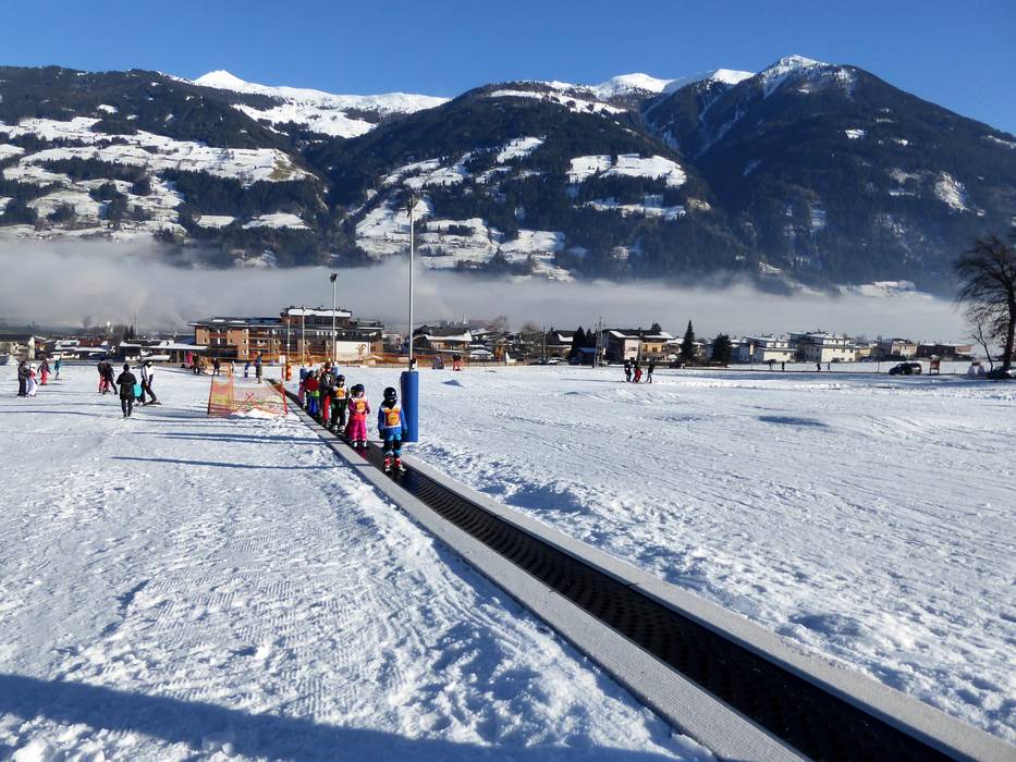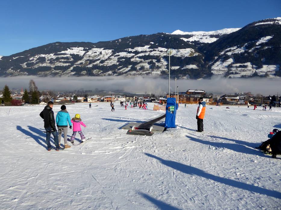 Juste en dessous de la station de la vallée du téléphérique Spieljoch à Fügen se trouve cette grande zone d'entraînement. Les enfants apprennent à skier sur le tapis roulant. Plusieurs écoles de ski s'entraînent avec les petits dans le parc pour enfants. Une piste à vagues complète l'offre.