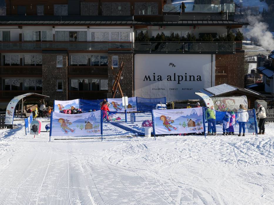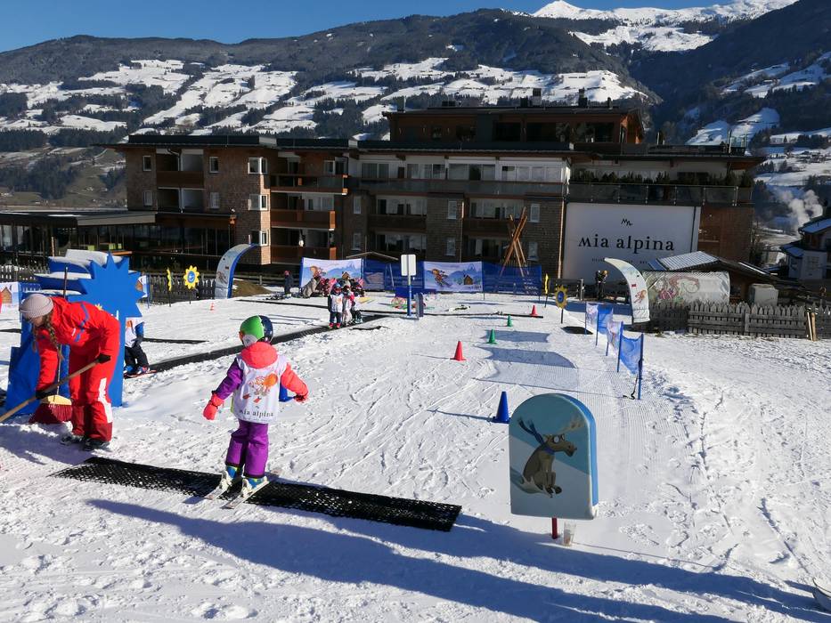 Juste à côté de l'hôtel familial Mia Alpina, en dessous de la station inférieure de la Spieljochbahn, se trouve un petit jardin d'enfants de l'école de ski skiCHECK. Sous la devise "Ski and Smile", les plus petits apprennent leurs premiers virages à ski sur un tapis roulant.