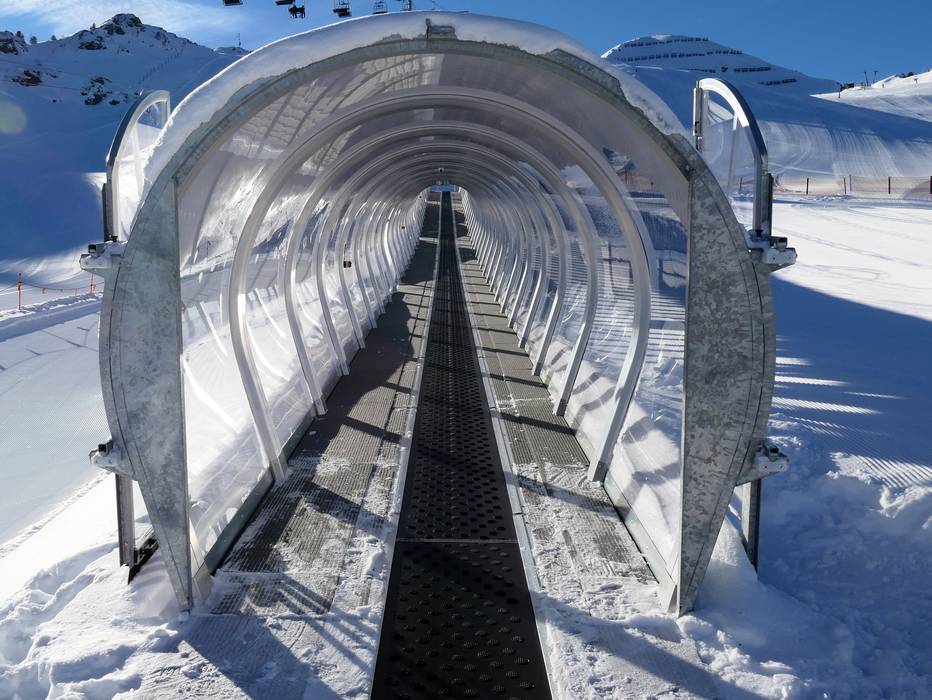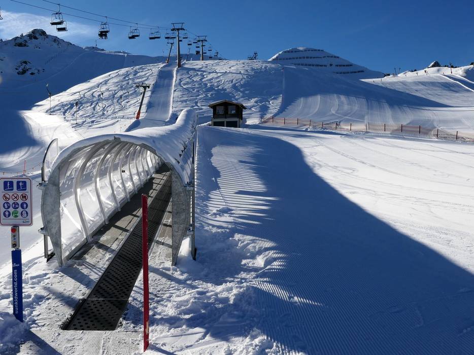 Grand espace d'entraînement à la station supérieure de la Spieljochbahn