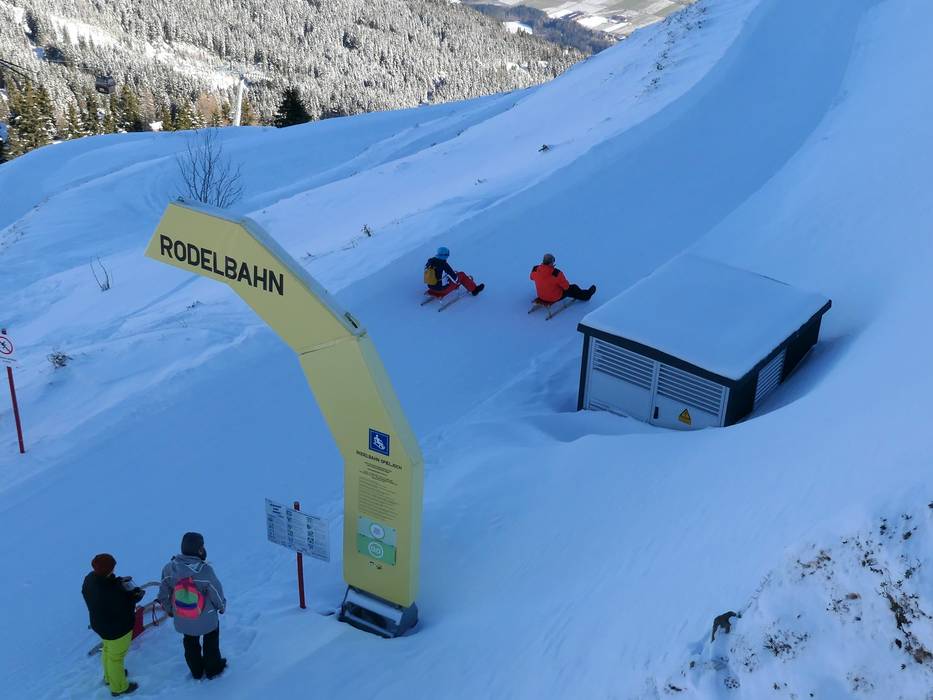 La piste de luge de 5,5 km relie la station supérieure à la station intermédiaire du téléphérique Spieljochbahn. Elle est ouverte tous les jours. Des luges peuvent être louées à la station supérieure. Un plaisir pour toute la famille !