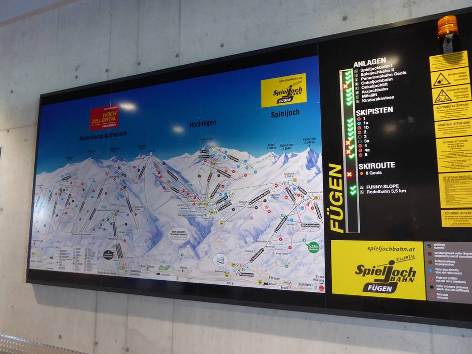 Indications de directions (plans, panneaux informatifs, signalisation) et sécurité sur le domaine skiable Spieljoch – Fügen