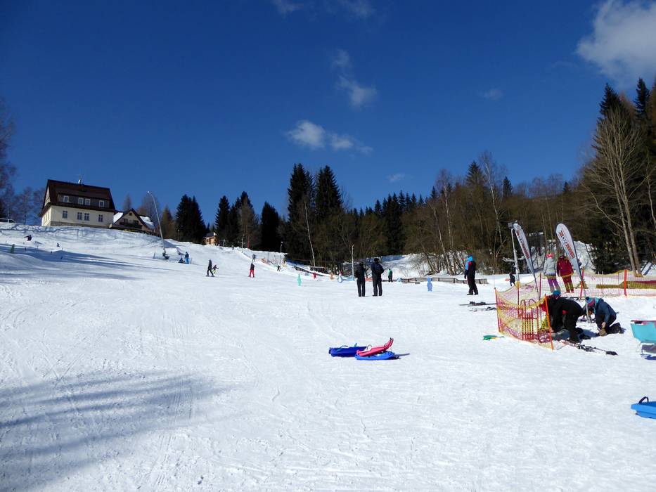 Dans les secteurs de ski Horní Mísečky/Medvědín et Svatý Petr, les débutants trouvent pleinement leur bonheur. Des pistes faciles et larges relient les stations supérieures aux stations inférieures. De plus, plusieurs téléskis pour débutants sont disponibles à Horní Mísečky. Il convient de souligner le téléski d’entraînement Harmony, situé sur la piste facile du Medvědín. Près des deux téléskis Horal et Slovan, on trouve également deux pistes faciles. Celles-ci sont un peu à l’écart, permettant ainsi aux débutants de s’exercer en toute tranquillité. L’école de ski Skol Max possède des sites à presque toutes les stations inférieures et est spécialisée dans l’accueil des débutants. Dans les espaces enfants, les tapis roulants peuvent également être utilisés pour les tout premiers virages et essais.
