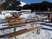 Le bar à parapluie Basislager est exploité par la Lyra-Alm. Ici, on se retrouve pour un vin chaud, un Jägertee et une collation pour terminer une belle journée de ski. Lors du ski nocturne, le Basislager invite également à la détente.