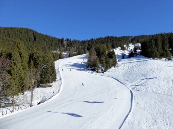 Descente variée de difficulté moyenne le long du Suttenbahn jusqu'à la station de la vallée. - Piste Stümpflingabfahrt