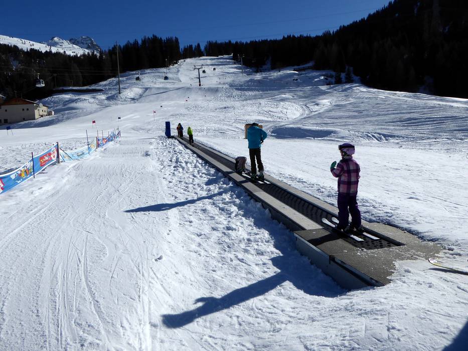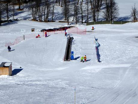Le jardin des neiges à la station de vallée est encadré par l'école suisse de ski et de snowboard de Splügen et propose un tapis magique.