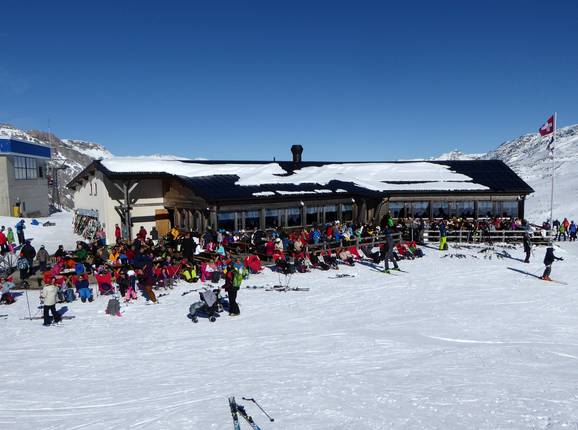 Le restaurant self-service est situé au cœur du monde alpin du Tambo. Depuis la grande terrasse ensoleillée, on profite d’une vue magnifique sur le Piz Tambo. On y propose des plats typiques pour skieurs.