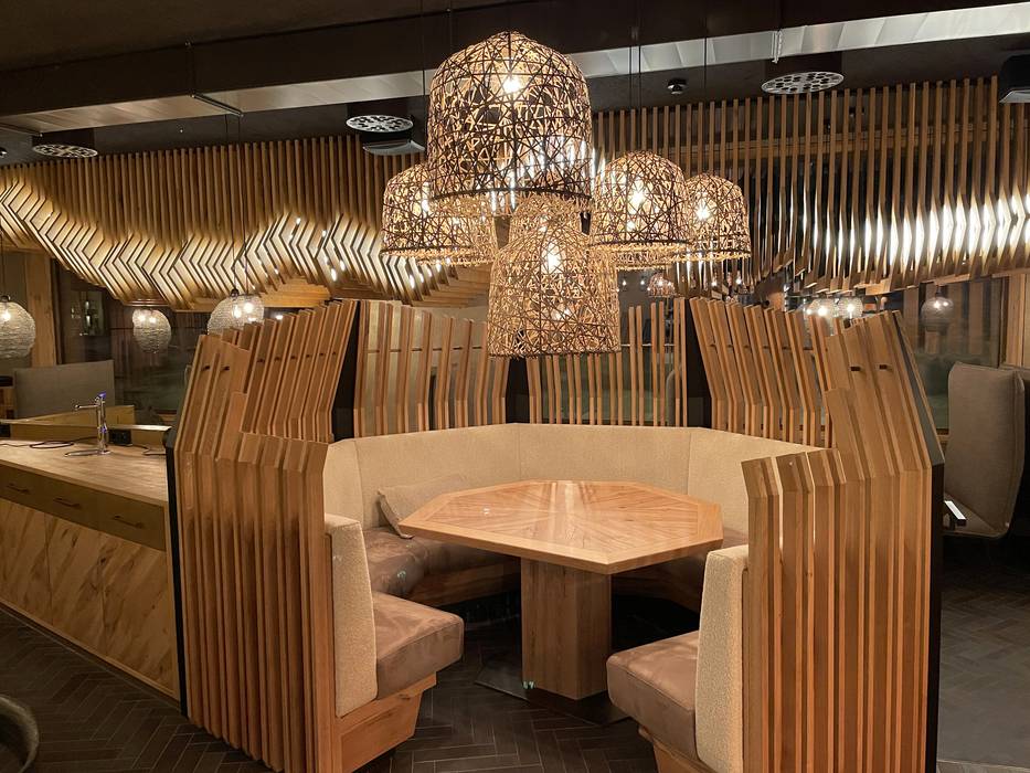 On peut terminer sa journée de ski de manière décontractée et élégante au Bibers de l'hôtel Biberkopf. Ce lieu branché à Warth offre une ambiance détendue et un feu de cheminée chaleureux. Idéal pour passer un moment convivial entre amis autour de bons cocktails.