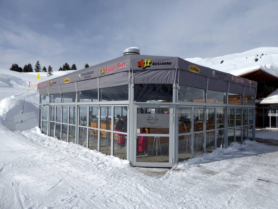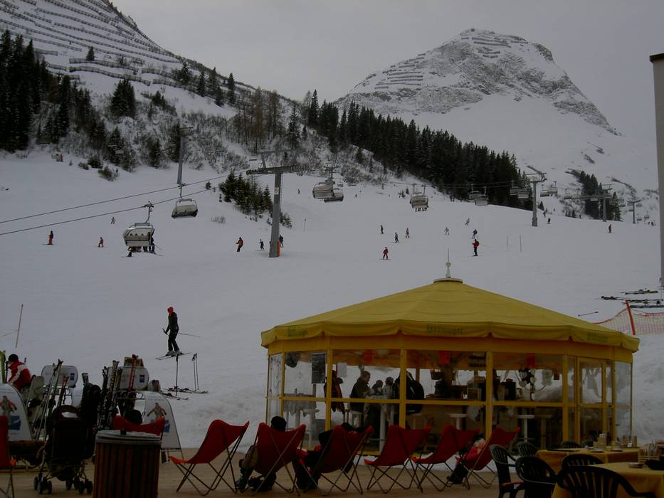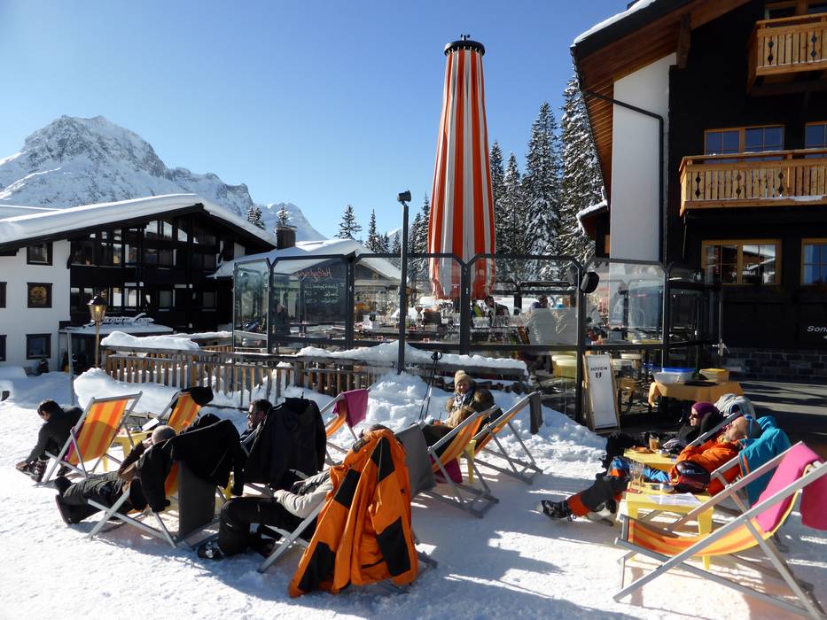 À Warth, on s'arrête au bar à parasol de l'hôtel Steffisalp. Après le ski, l'ambiance y est festive et il arrive que la soirée se prolonge.