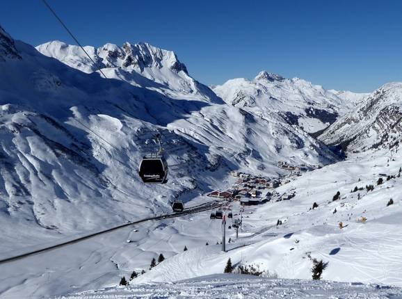 L’Auenfeldjet relie Lech-Zürs à… Le « Gamssprung » à Schröcken Le cercle est bouclé - vue sur Trittkopf- et… Vue sur le domaine skiable au col du… Flexenbahn : Le cercle est bouclé ! Vue de Schröcken jusqu'à Lech avec…
