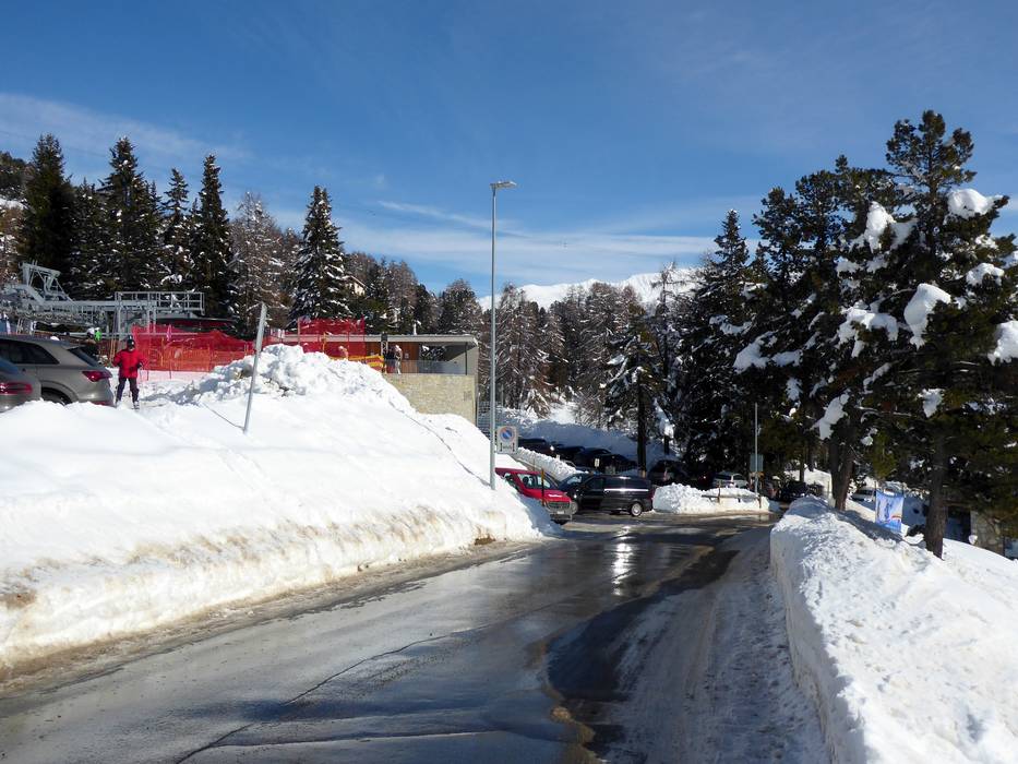 L'accès à St. Moritz est possible par divers cols de montagne ou par le tunnel de la Vereina (avec chargement automobile). Depuis Zurich, St. Moritz est accessible en 2,5 heures, depuis Munich en 4 heures, depuis Milan en un peu moins de 3 heures et depuis Innsbruck en 2,5 heures. Les autoroutes les plus proches sont relativement éloignées du domaine skiable. À Celerina et St. Moritz Bad, il est possible de se garer directement aux remontées mécaniques. À St. Moritz même, il existe deux parkings couverts. Depuis le parking Serletta (près de la gare), il faut traverser la ville à pied pour rejoindre le funiculaire Chantarella. Le parking Quadrellas, qui compte 200 places, se trouve à seulement 80 mètres environ du funiculaire Chantarella. Un autre accès est disponible à Suvretta. Les places de parking sont généralement payantes. Si les conditions d’enneigement rendent les routes plus difficiles, il est possible de rejoindre l’Engadine depuis Klosters/Selfranga dans le Prättigau grâce au transport de voitures par le tunnel de la Vereina. Ceux qui en ont les moyens peuvent rejoindre la région Engadin St. Moritz en jet privé et atterrir à l’aéroport privé tout proche de Samedan.Le col de l'Albula est fermé en hiver, le col de la Flüela généralement aussi. L'accès se fait par la Basse-Engadine ou par Savognin. Veuillez toujours consulter les informations routières actuelles, car certaines routes peuvent être fermées temporairement en cas de chutes de neige.