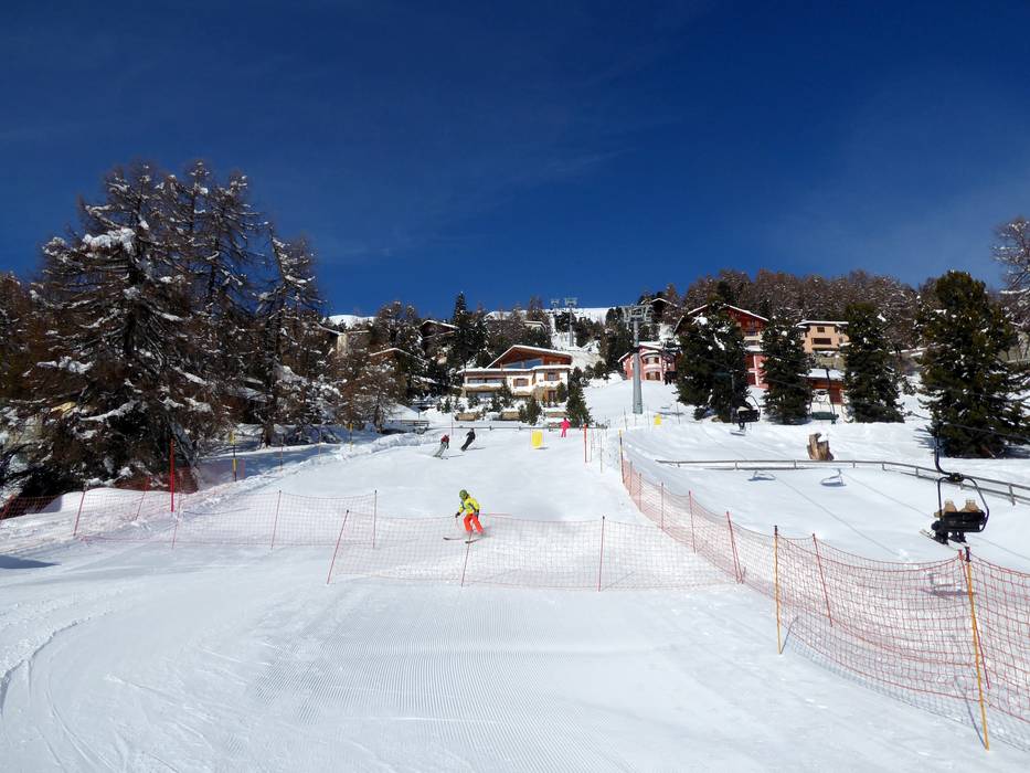 Sur la montagne locale de St. Moritz, il y a des descentes de tous niveaux de difficulté. Depuis le terrain d'altitude, on peut dévaler de très larges pistes au-dessus de la limite des arbres jusqu'en dessous de celle-ci. Les pistes sont très larges et idéales pour le carving. Les amateurs de poudreuse trouveront leur bonheur dans la zone freeride Zöllner.